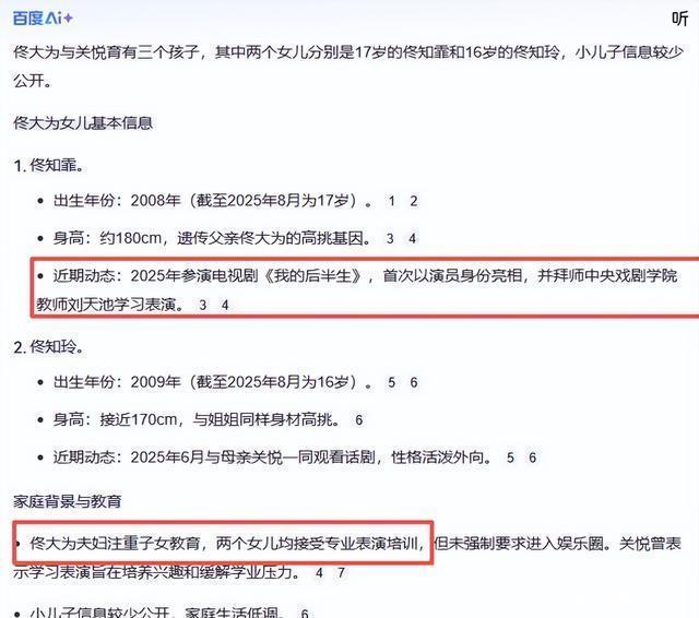 佟大为的女儿 前边那几个人,或许是演技不好,或许是长得不好,但是至少是上了演艺学校,或者是本身就是网红有名气。 但是佟大为的女儿就不一样了,她从没有上过什么演艺学校,而且才17岁的年纪,就已经能和张国立,还有梅婷这样的大佬们搭戏了。